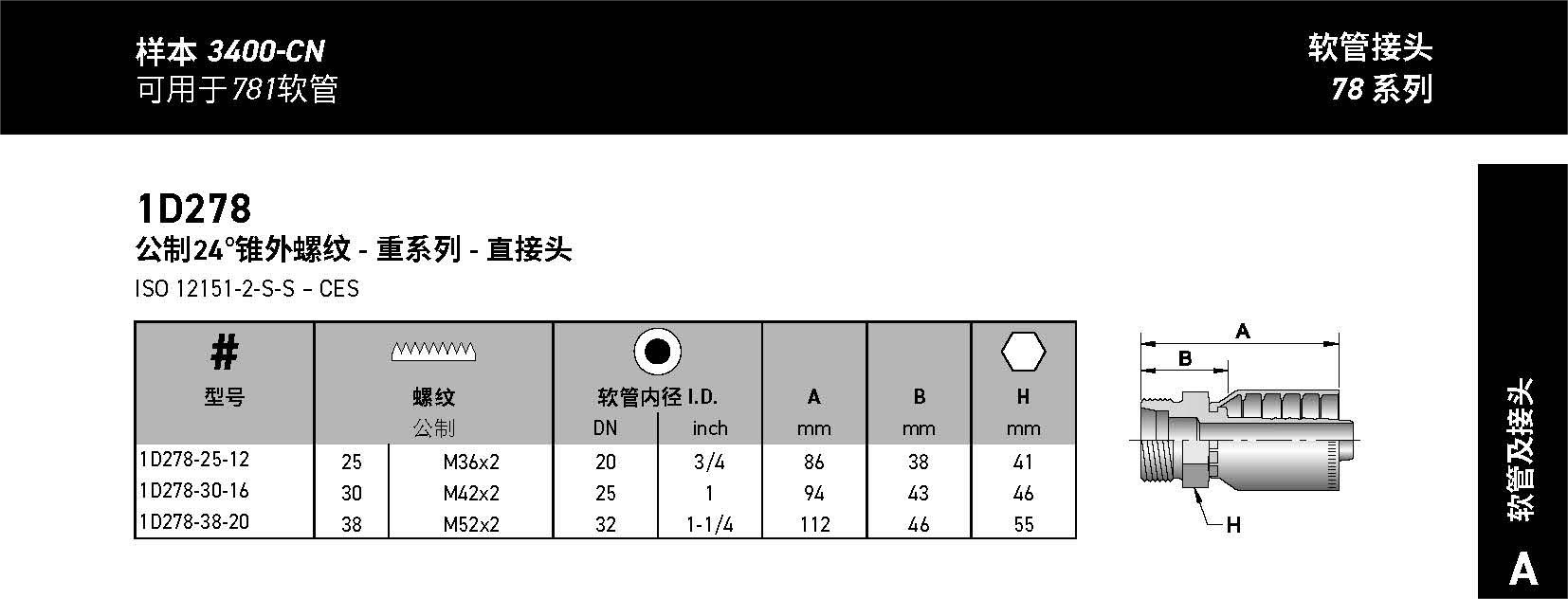 1D278 公制24°錐外螺紋 - 重系列 - 直接頭 ISO 12151-2-S-S – CES