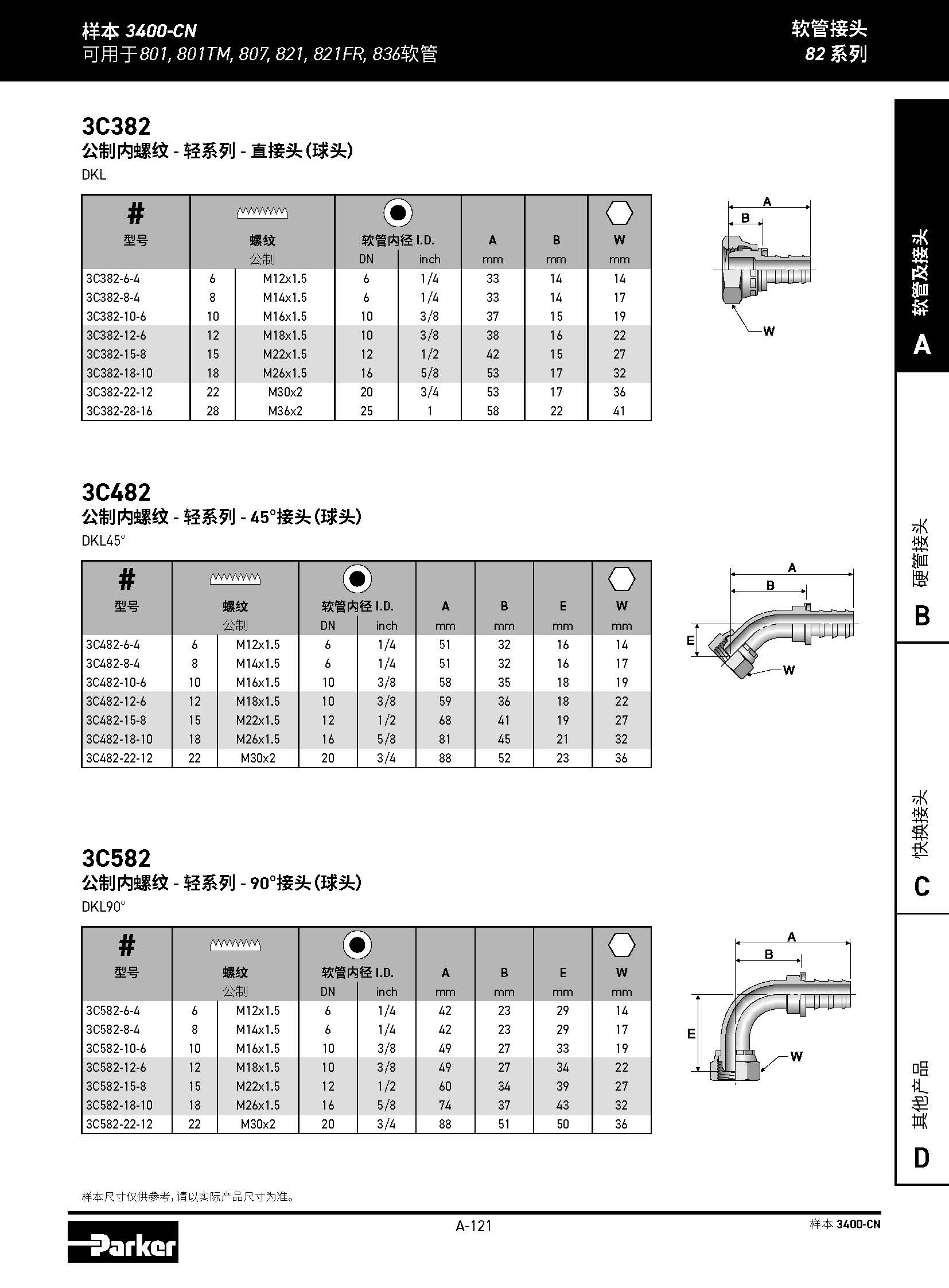 3C582 公制內(nèi)螺紋 - 輕系列 - 90°接頭(球頭) DKL90°