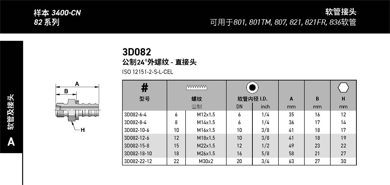 3D082 公制24°外螺紋 - 直接頭 ISO 12151-2-S-L-CEL