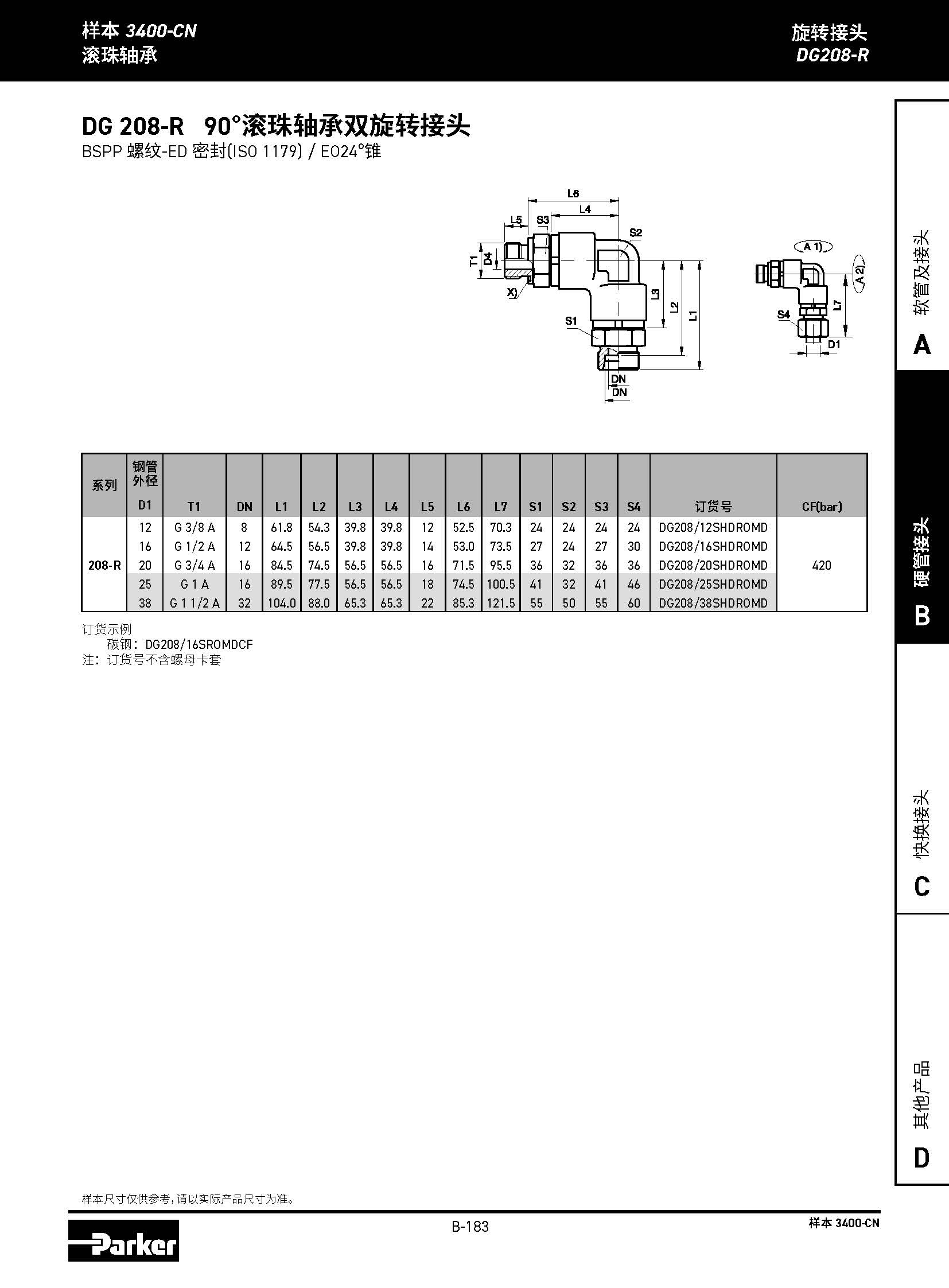 DG 208-R 90°滾珠軸承雙旋轉(zhuǎn)接頭 BSPP 螺紋-ED 密封(ISO 1179) / EO24