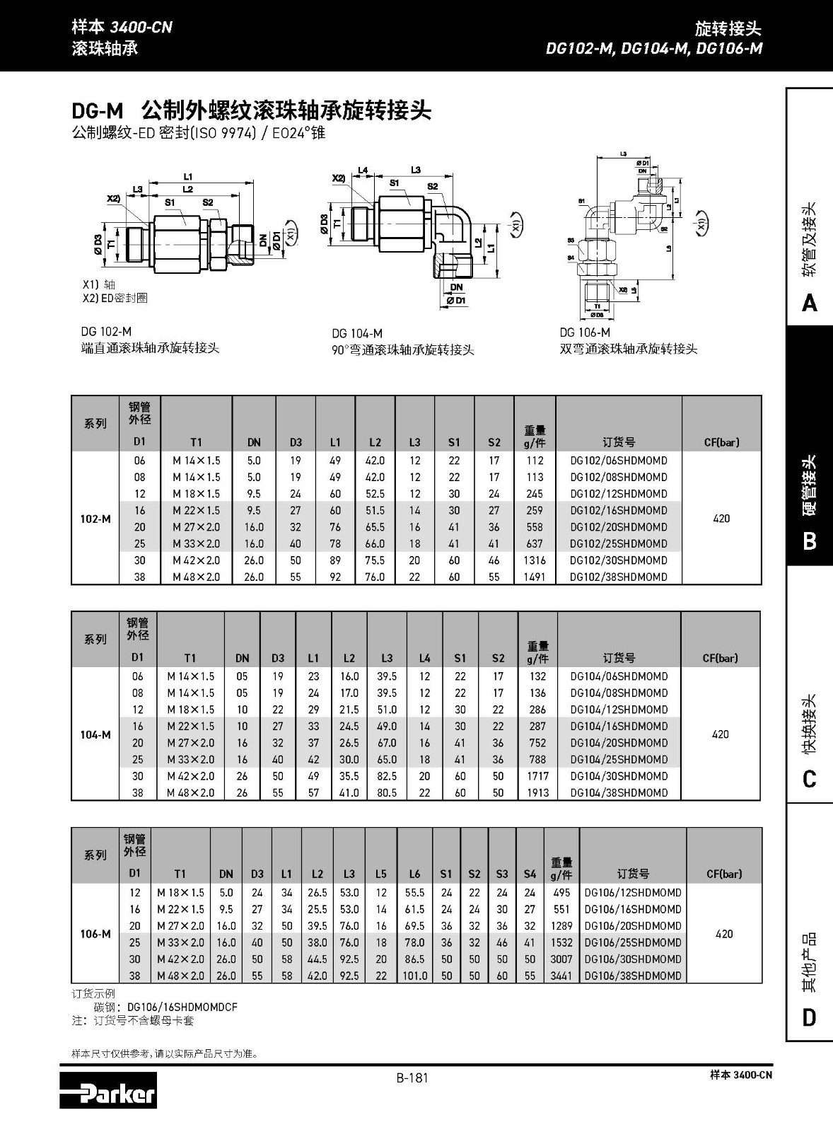 DG-M 公制外螺紋滾珠軸承旋轉(zhuǎn)接頭 公制螺紋-ED 密封(ISO 9974) / EO24°錐