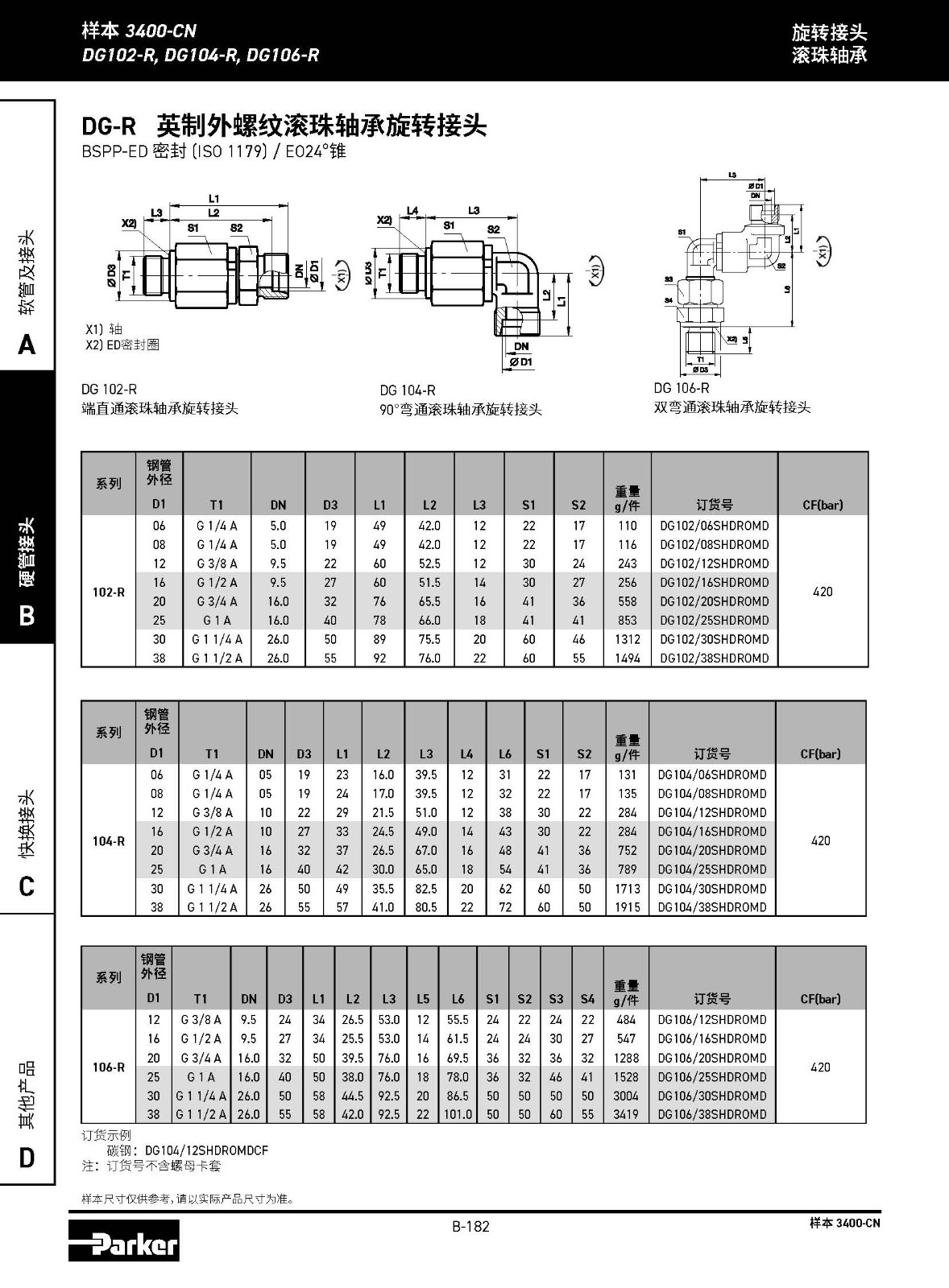 DG-R 英制外螺紋滾珠軸承旋轉(zhuǎn)接頭 BSPP-ED 密封 (ISO 1179) / EO24°錐