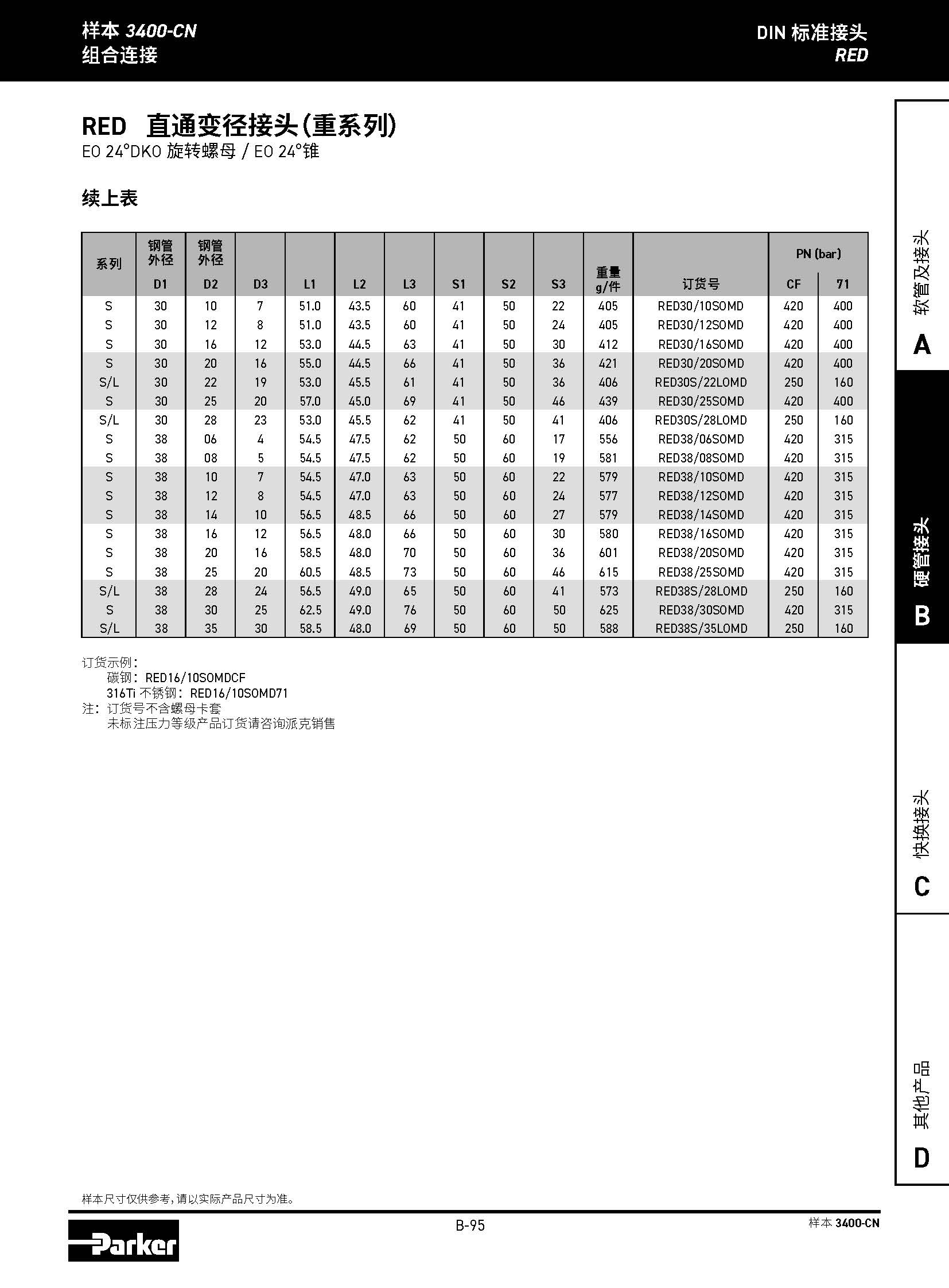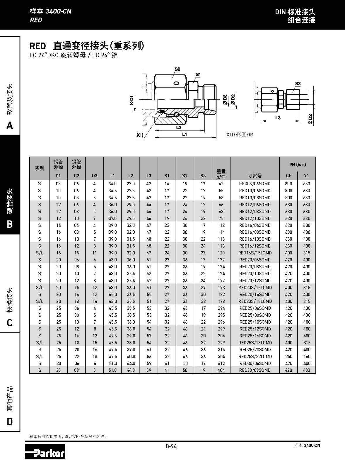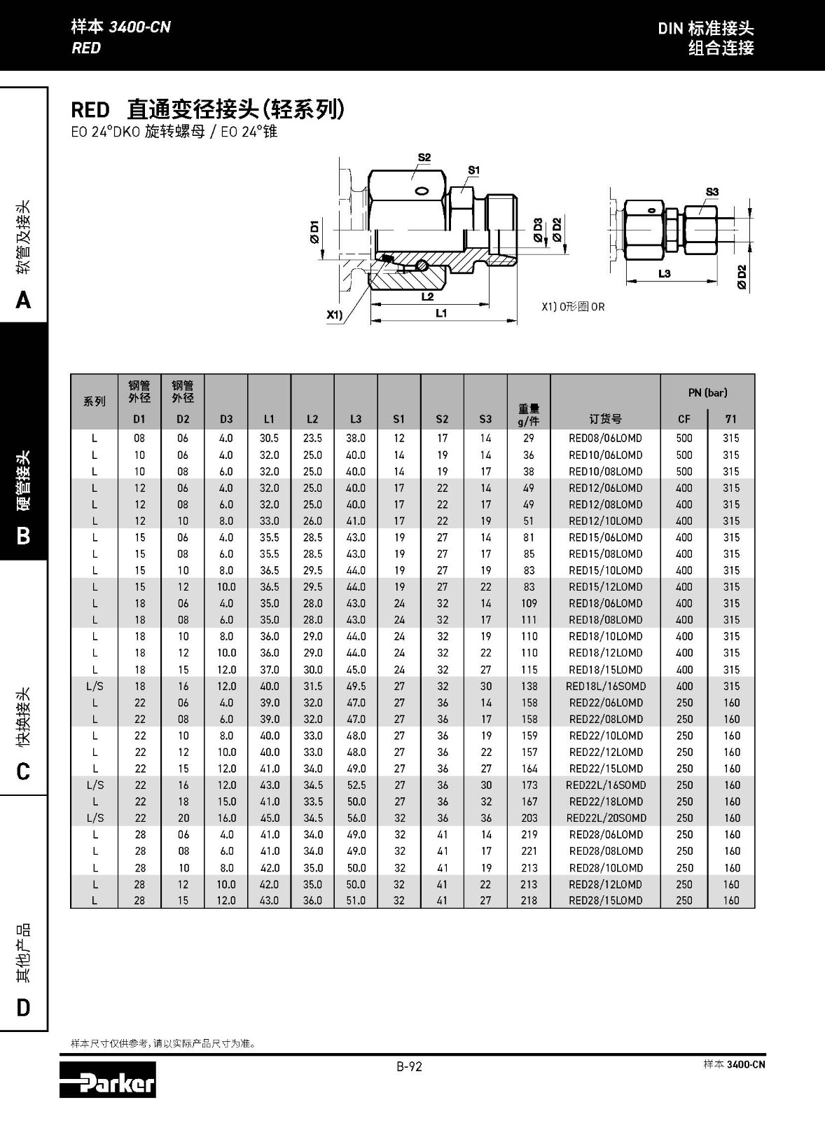 RED 直通變徑接頭(輕系列) EO 24°DKO 旋轉(zhuǎn)螺母 / EO 24°錐