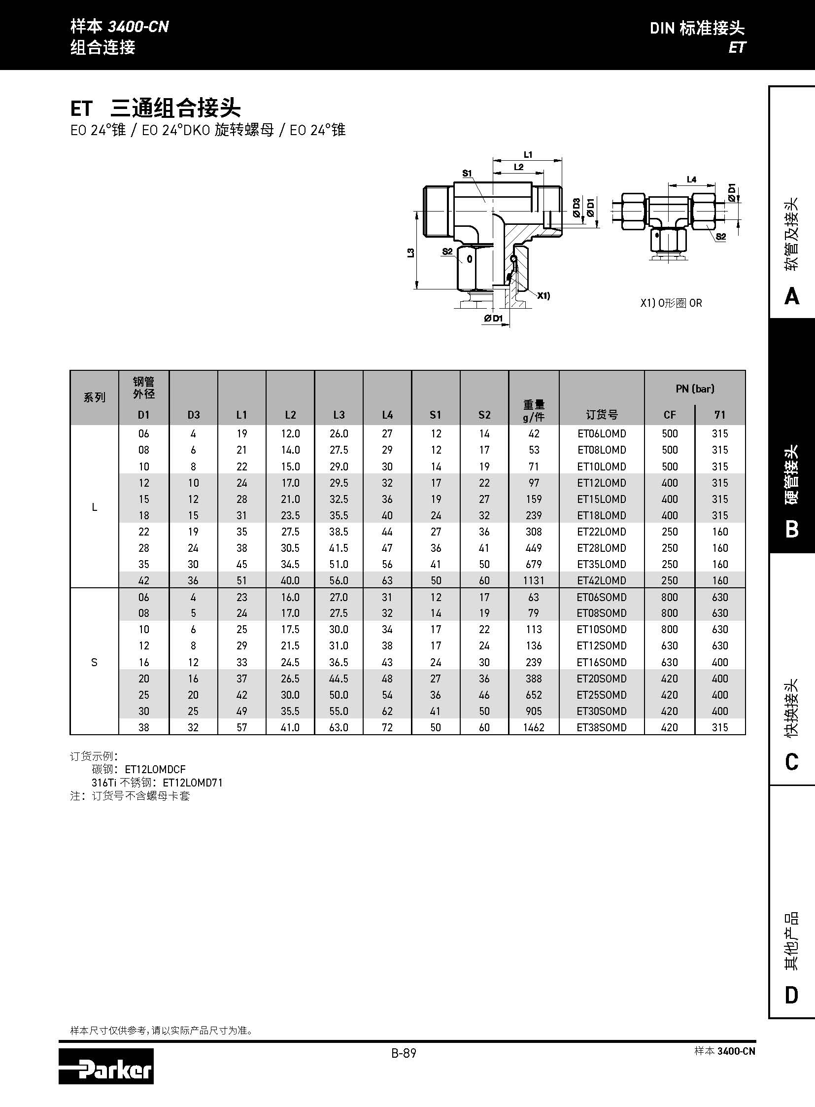 EL 直路三通組合接頭 EO 24°錐 / EO 24°錐 / EO 24°DKO 旋轉(zhuǎn)螺母