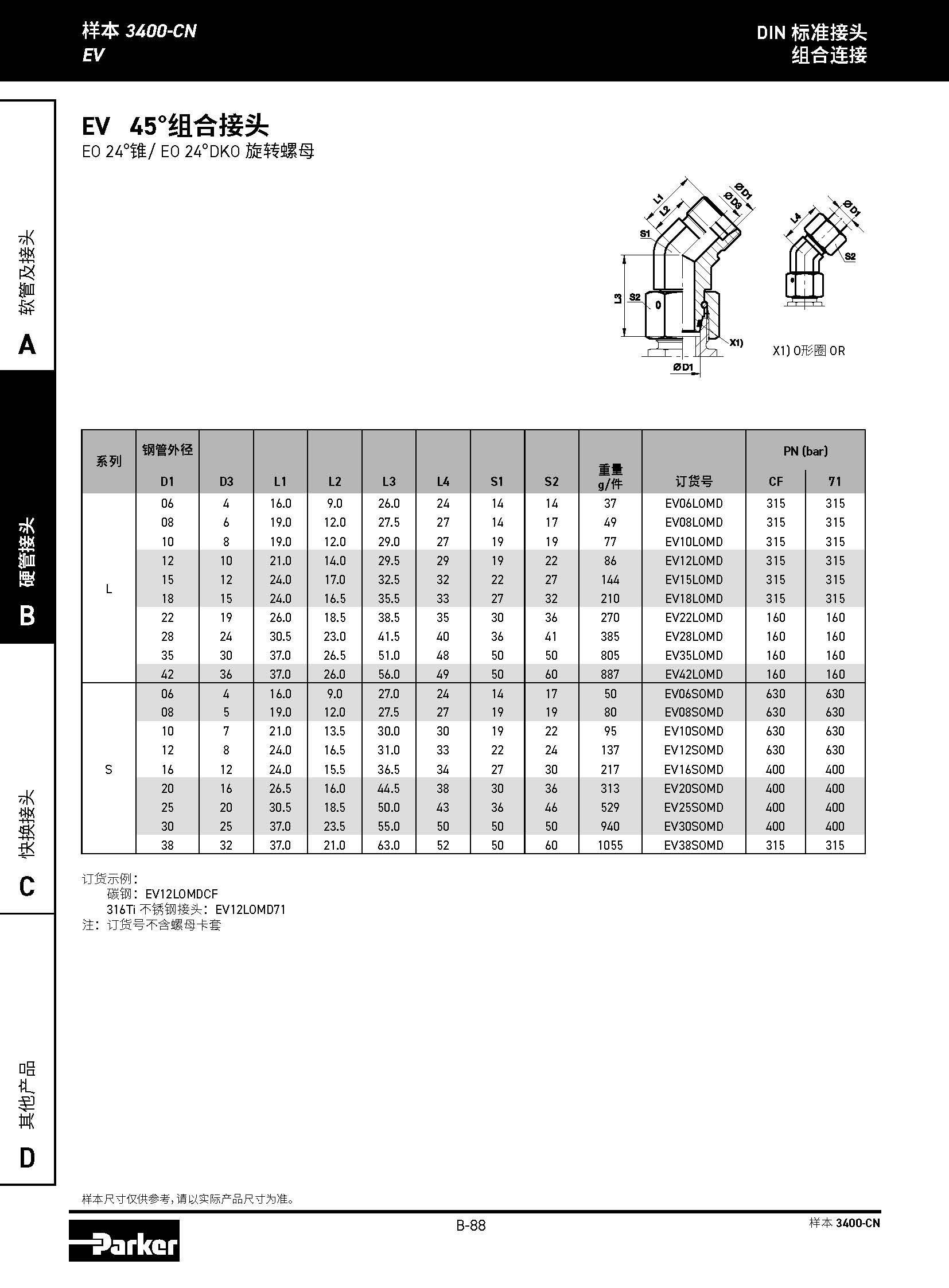 EV 45°組合接頭 EO 24°錐/ EO 24 °DKO 旋轉(zhuǎn)螺母