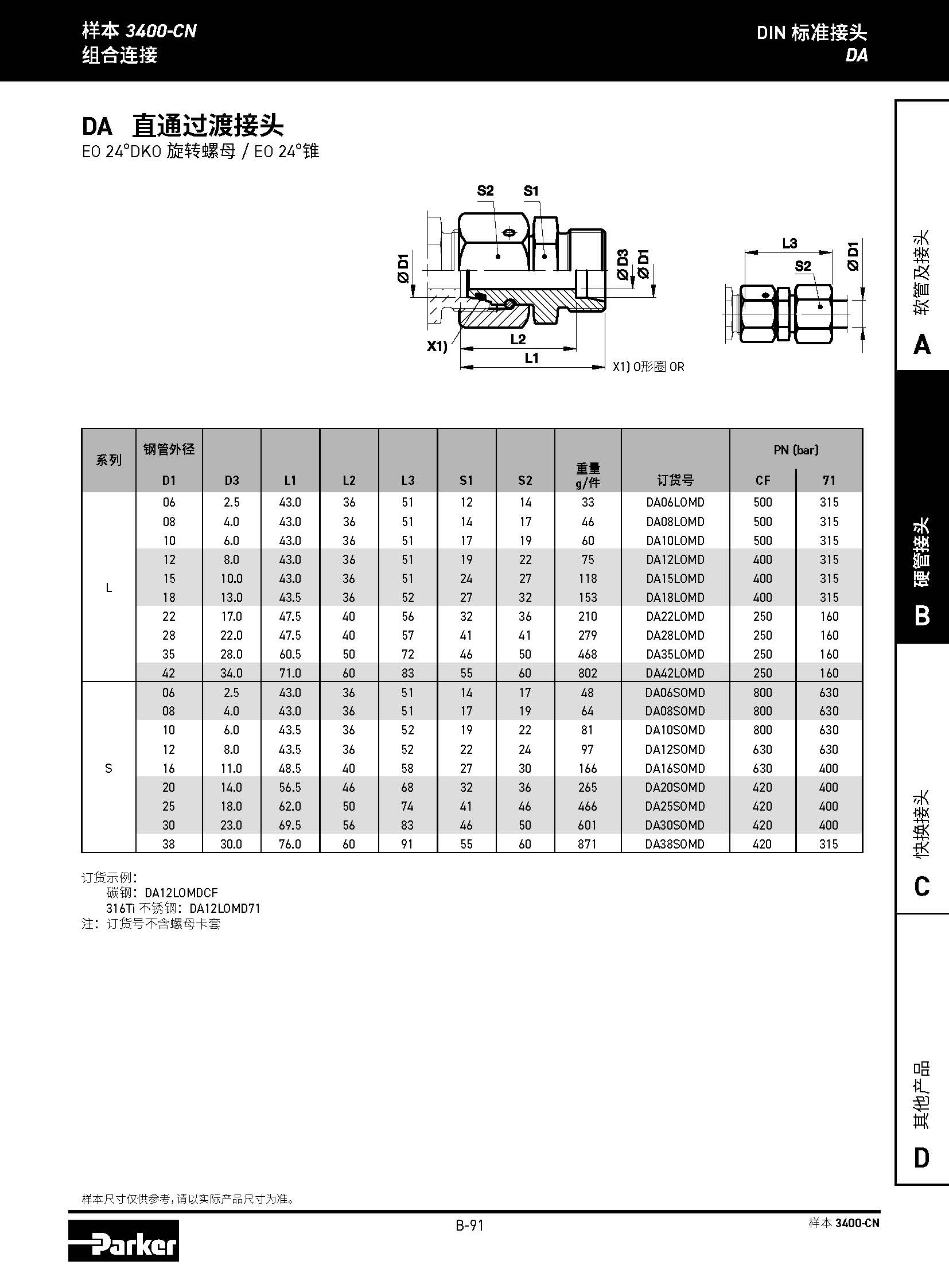 DA 直通過渡接頭 EO 24°DKO 旋轉(zhuǎn)螺母 / EO 24°錐