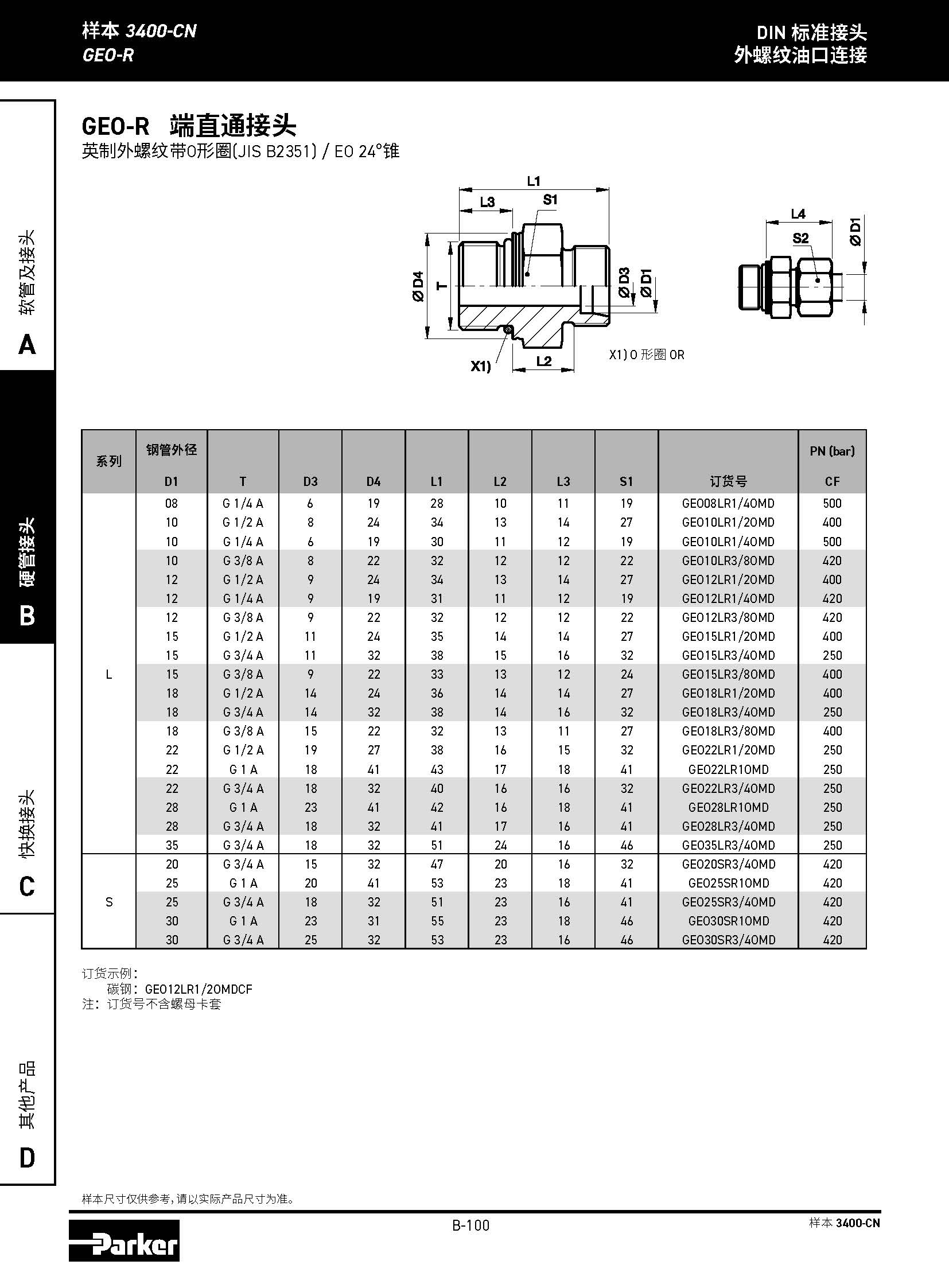 GEO-R 端直通接頭 英制外螺紋帶O形圈(JIS B2351) / EO 24°錐