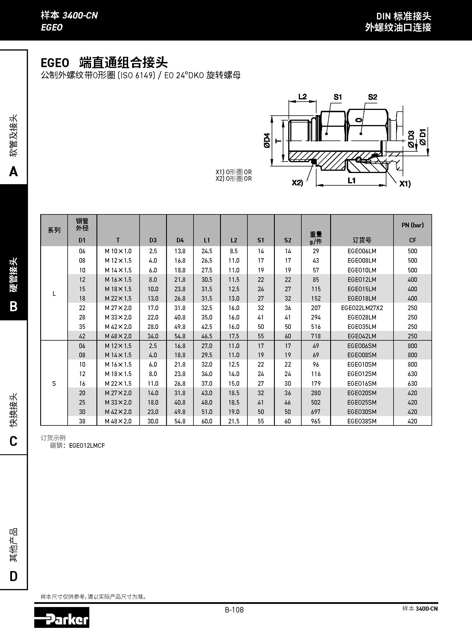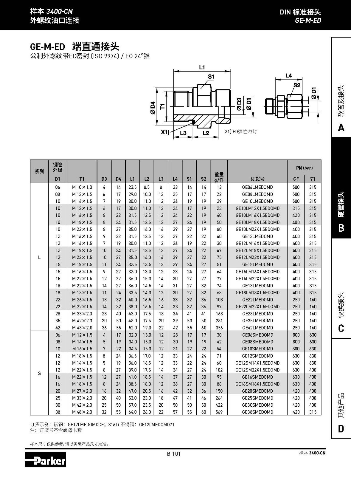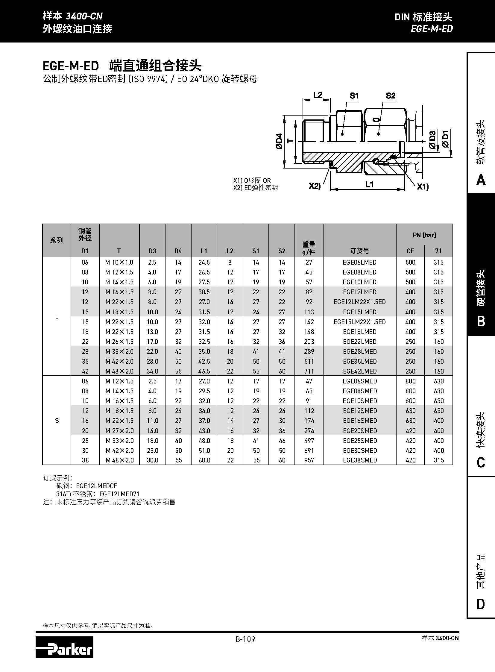EGE-M-ED 端直通組合接頭 公制外螺紋帶ED密封 (ISO 9974) / EO 24°DKO 旋轉(zhuǎn)螺母