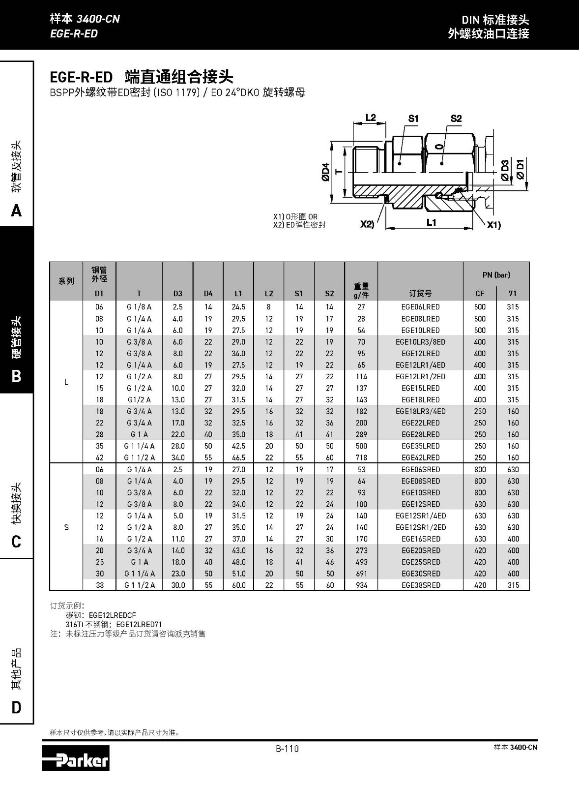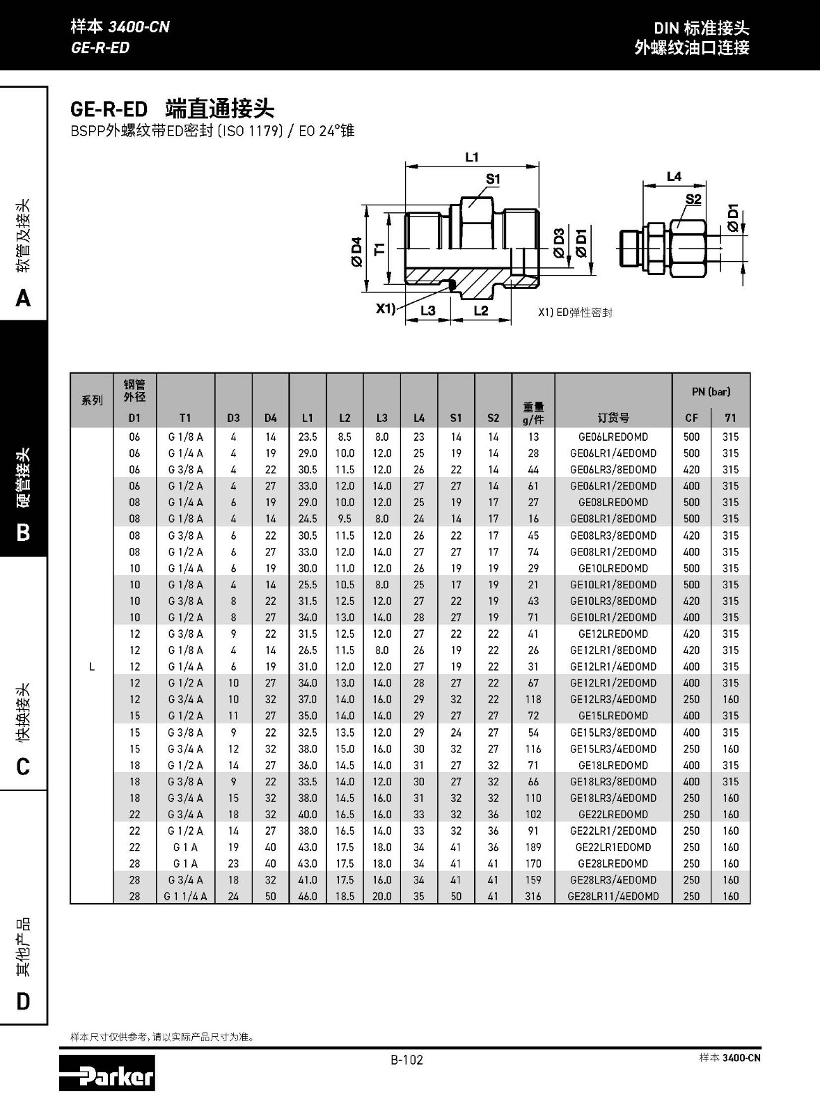 EGE-R-ED 端直通組合接頭 BSPP外螺紋帶ED 密封 (ISO 1179) / EO 24°DKO 旋轉(zhuǎn)螺母