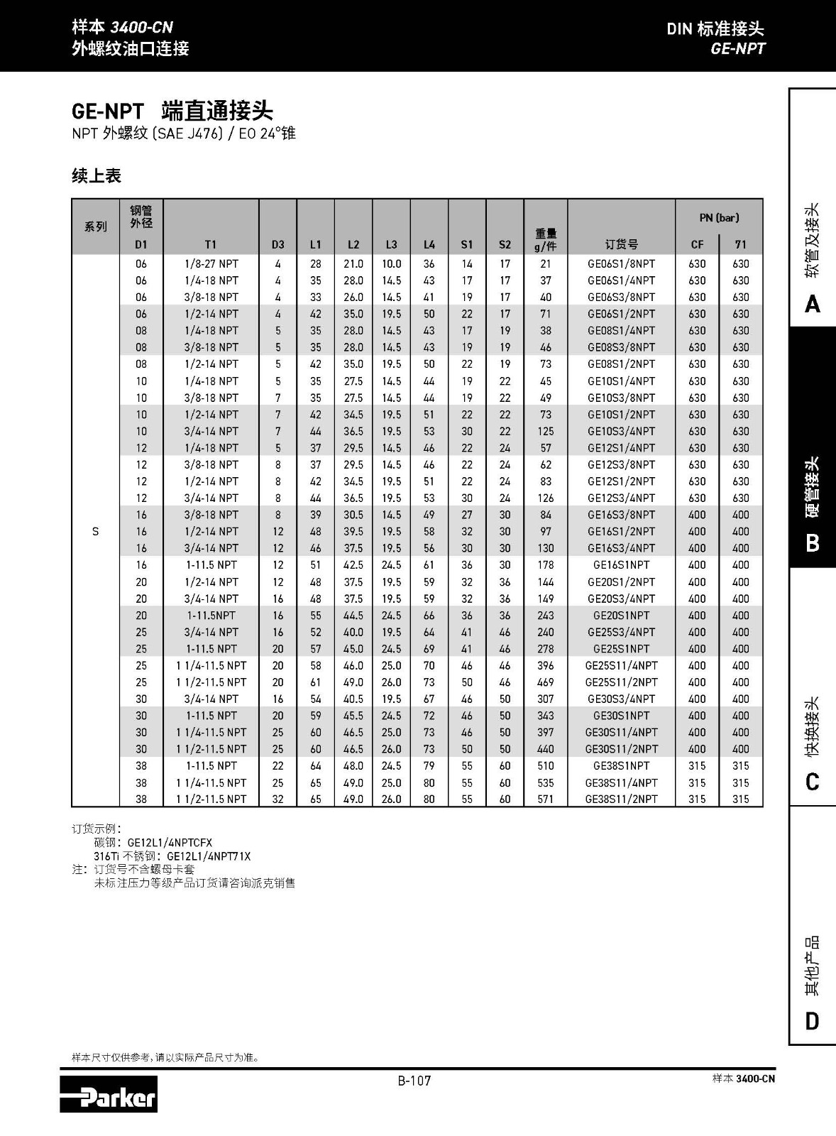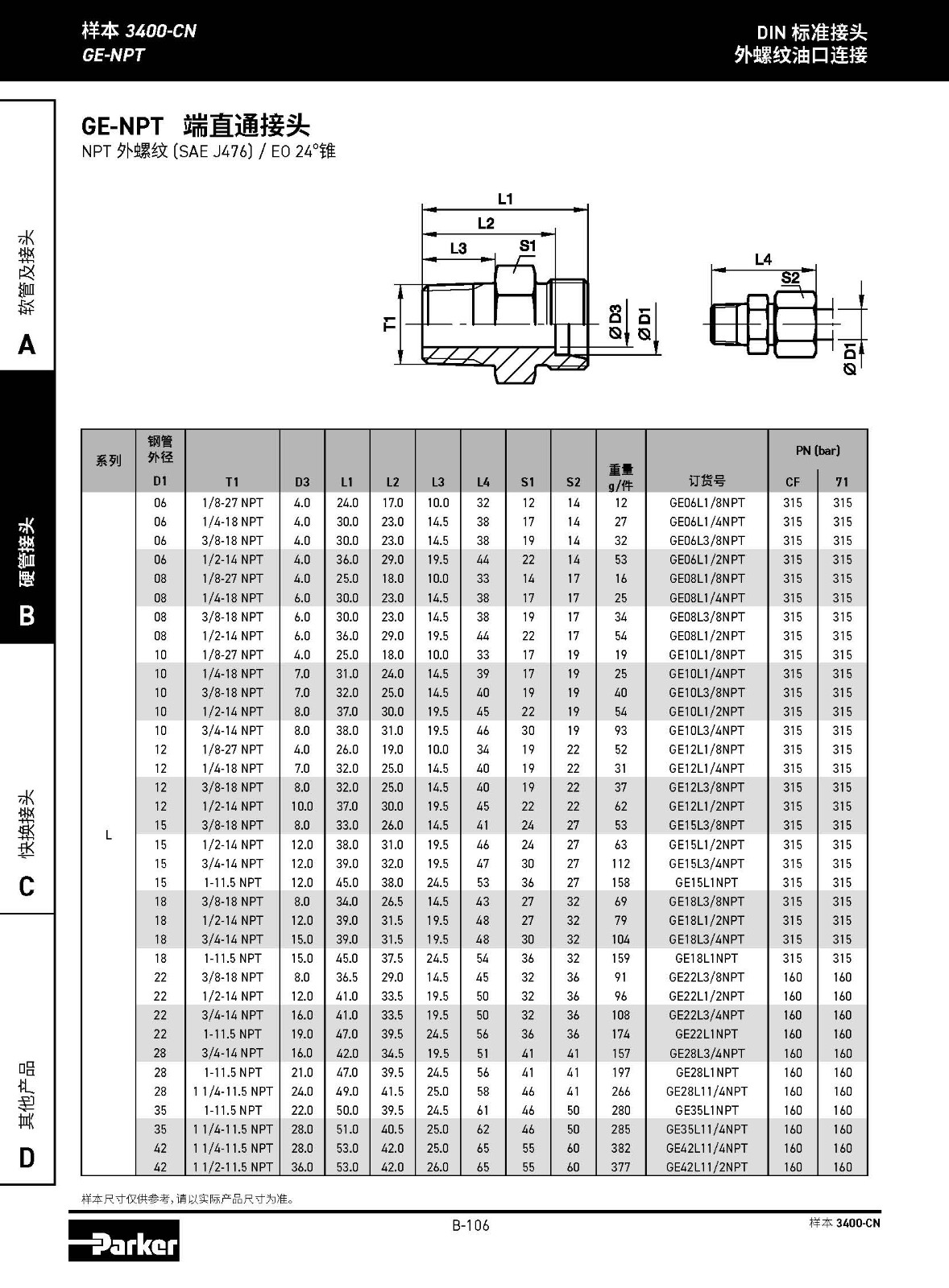 GE-NPT 端直通接頭 NPT 外螺紋 (SAE J476) / EO 24°錐