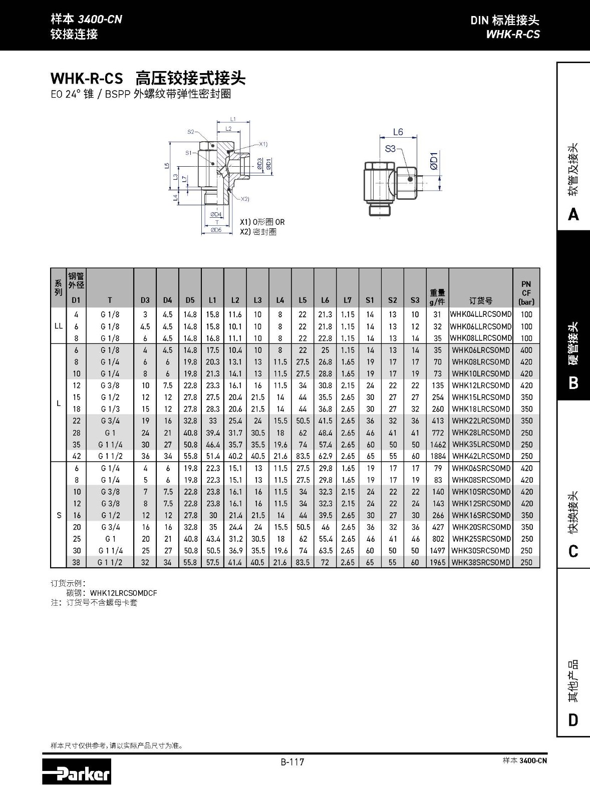 WHK-R-CS 高壓鉸接式接頭 EO 24° 錐 / BSPP 外螺紋帶彈性密封圈