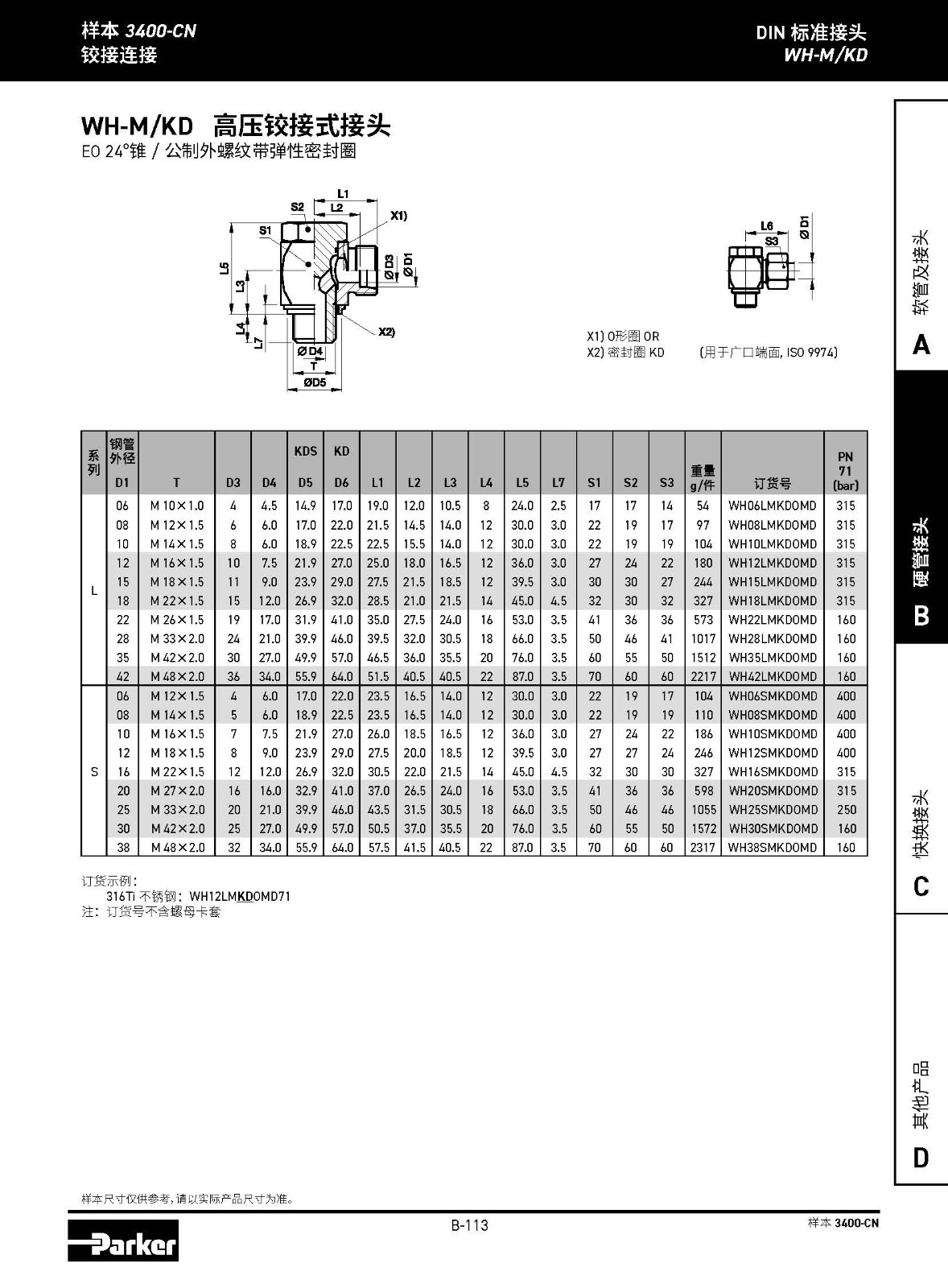 WH-M/KD 高壓鉸接式接頭 EO 24°錐 / 公制外螺紋帶彈性密封圈