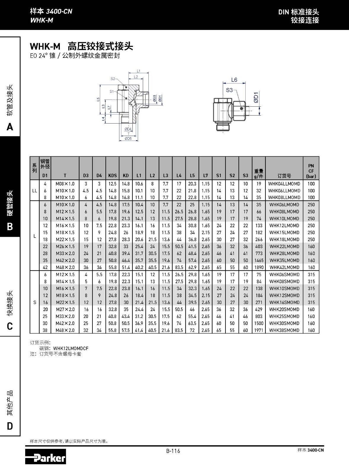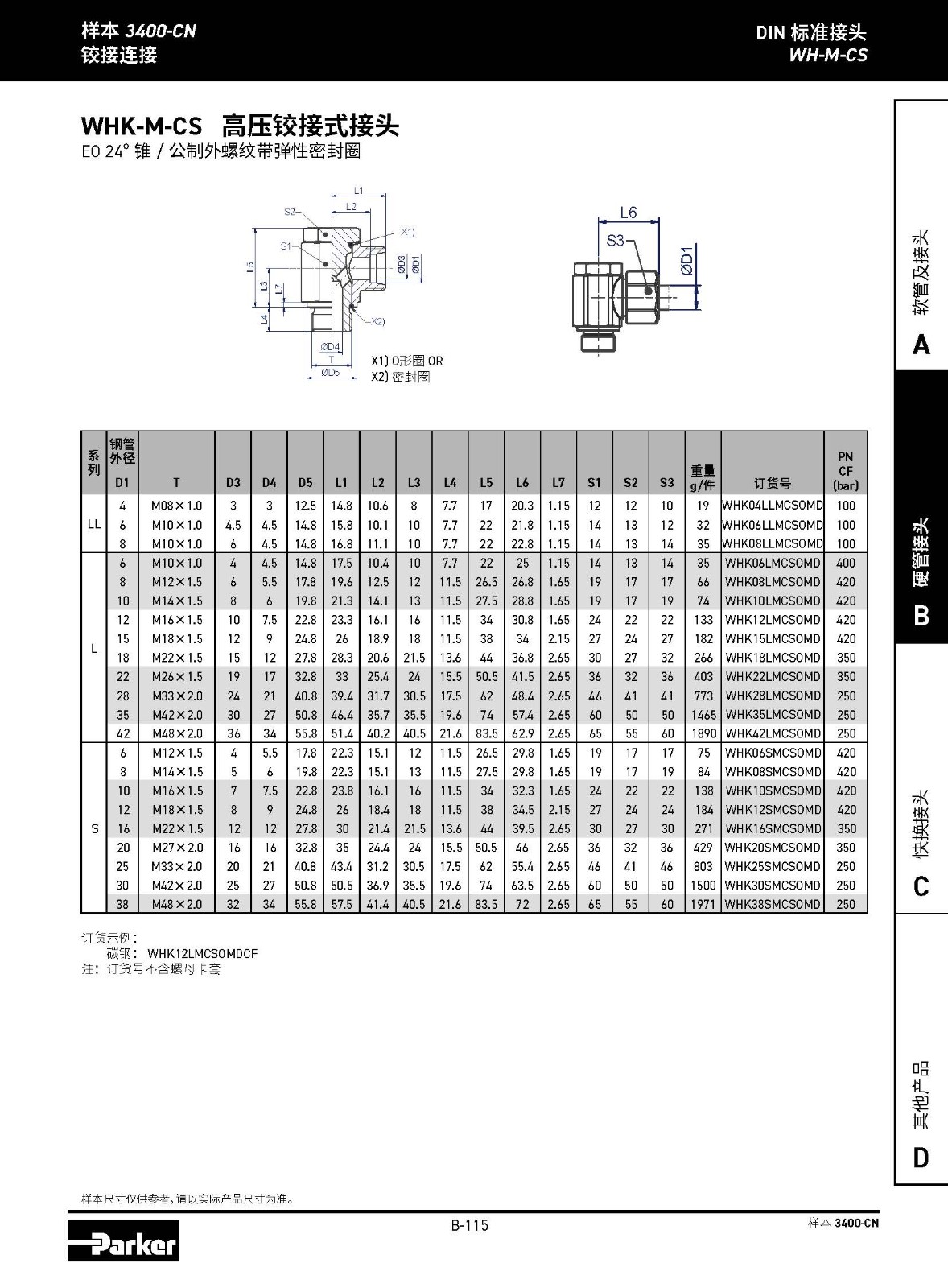 WHK-M 高壓鉸接式接頭 EO 24°錐 /公制外螺紋金屬密封圈
