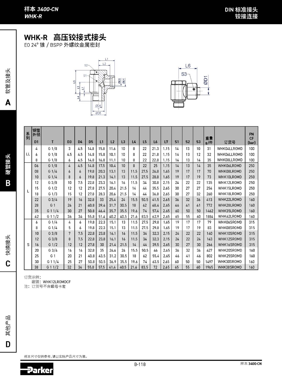 WHK-R 高壓鉸接式接頭 EO 24° 錐 / BSPP 外螺紋金屬密封