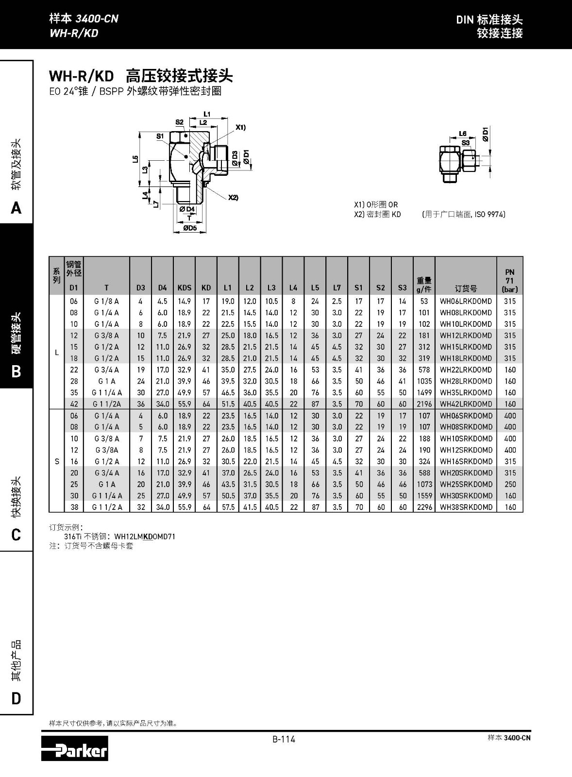 WH-R/KD 高壓鉸接式接頭 EO 24°錐 / BSPP 外螺紋帶彈性密封圈