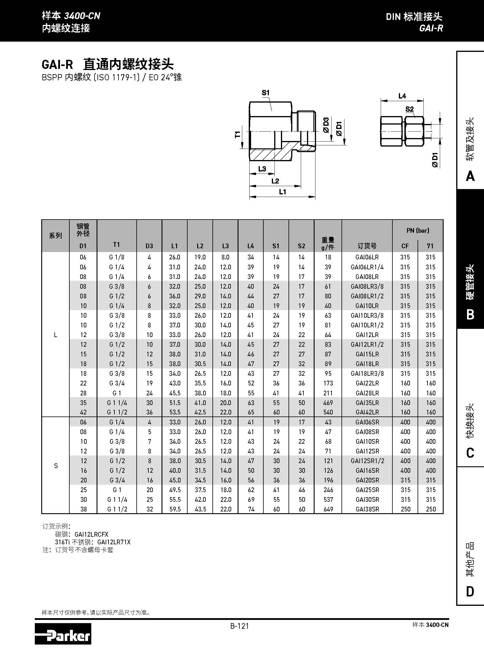 GAI-R 直通內(nèi)螺紋接頭 BSPP 內(nèi)螺紋 (ISO 1179-1) / EO 24°錐